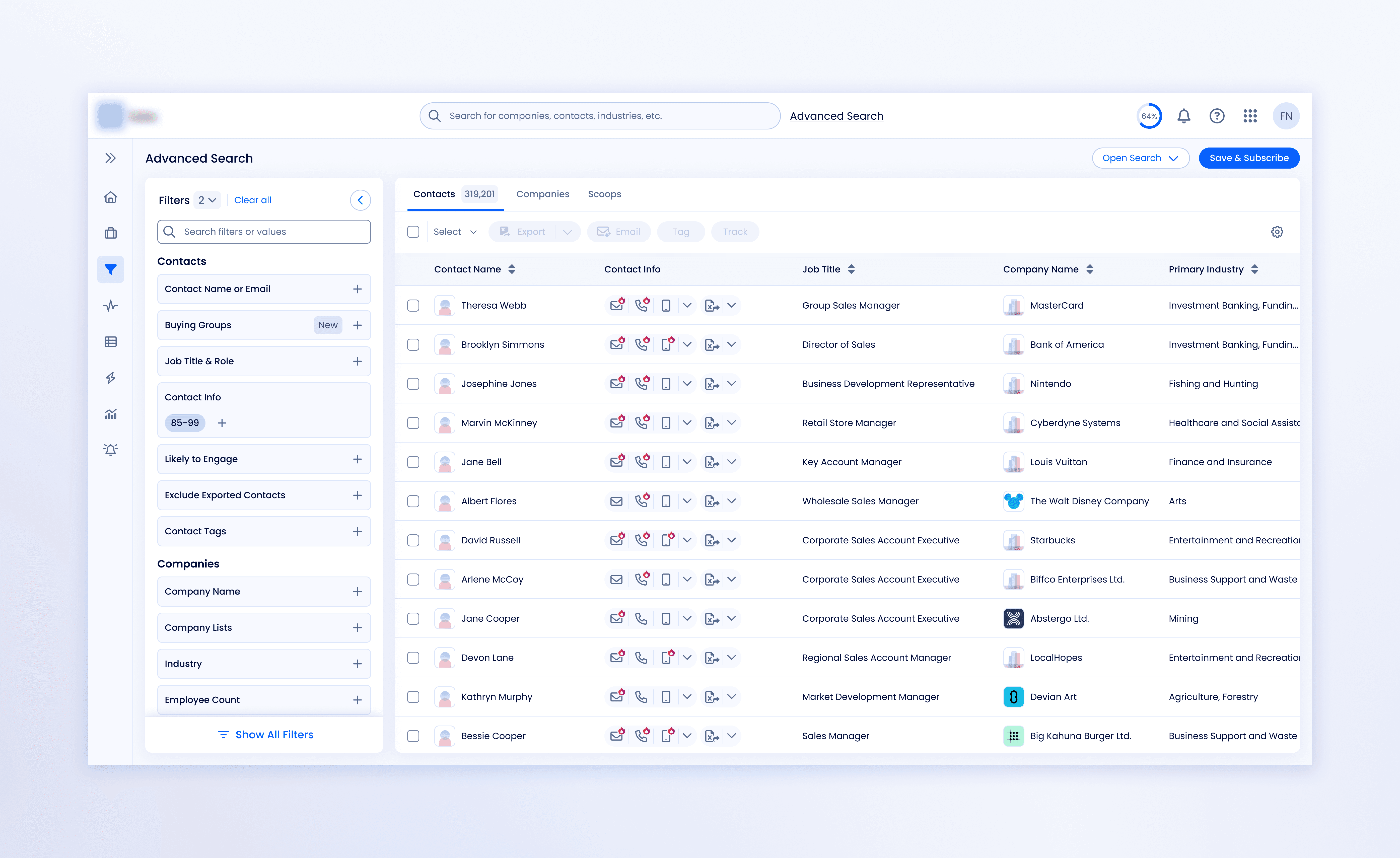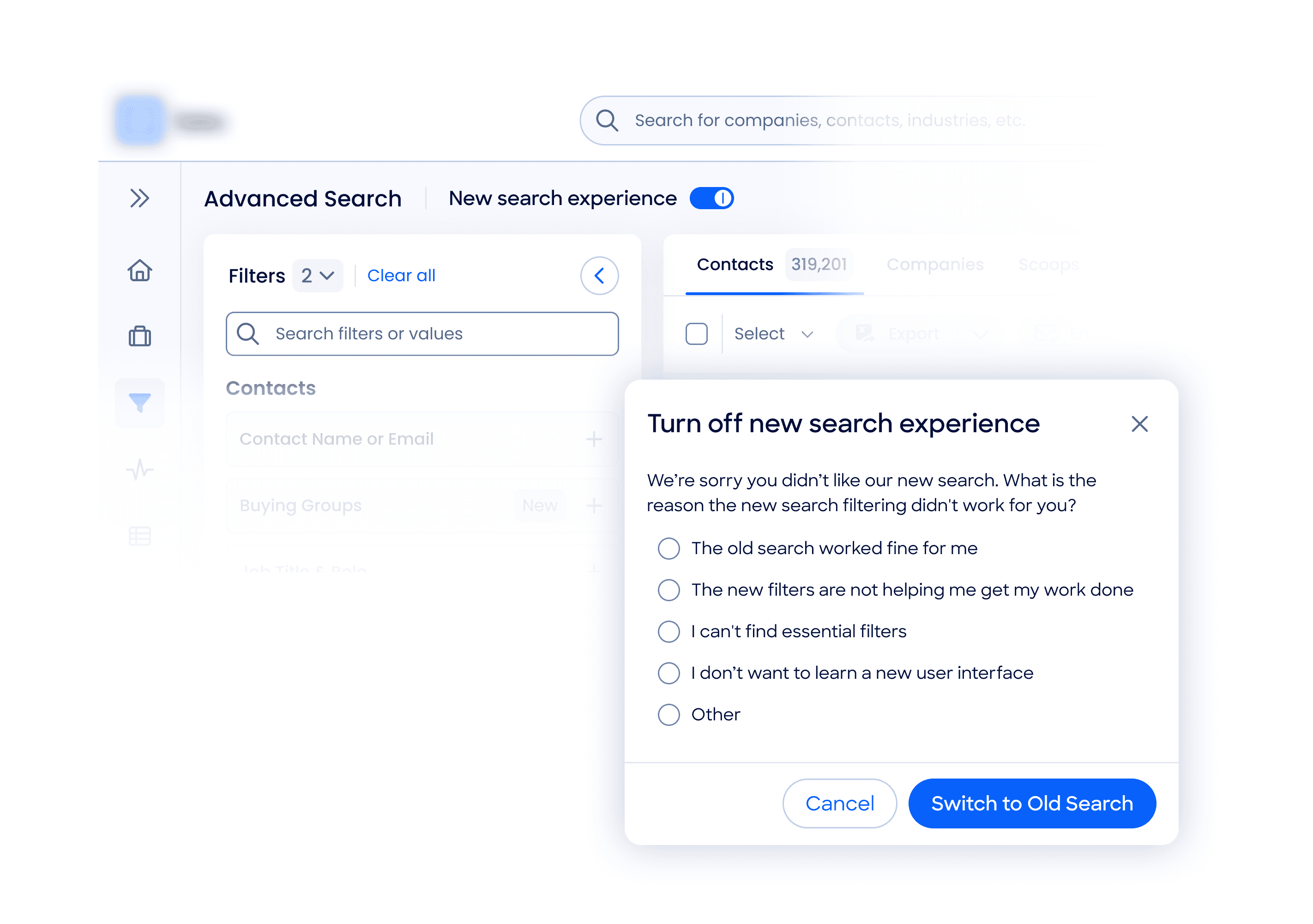 As we approached beta, we analyzed 9.1 million filtered searches from 337,708 users over a 12-month period, combining this data with user interviews, observed behaviors, and core use cases (e.g., account penetration, executive outreach). These combined insights informed our decision on which filters to surface by default, balancing usage with broader strategic priorities.