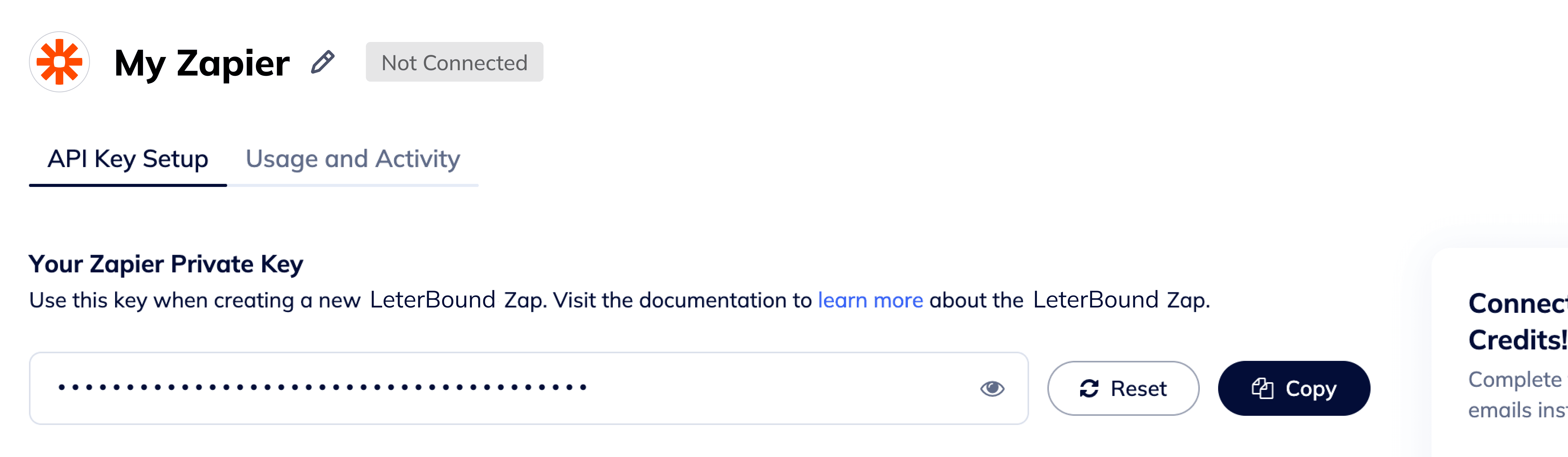 We surfaced essential setup details front and center, with the API key visible by default. To further streamline the experience, we replaced long, collapsed sections with a tabbed layout, moving slower loading usage data to its own tab. This reduced visual clutter, improved load performance, and kept the configuration area focused on setup.