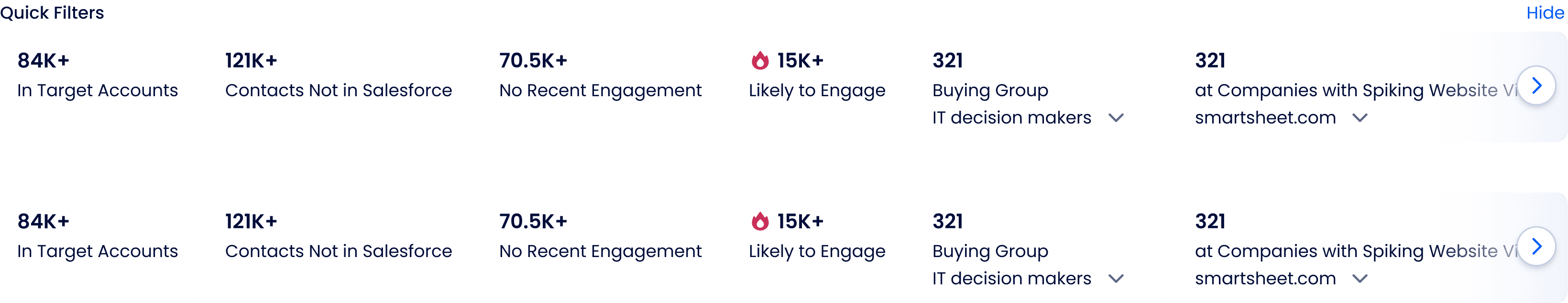 Quick Filters was scoped as a lightweight, one click solution for common prospecting tasks.